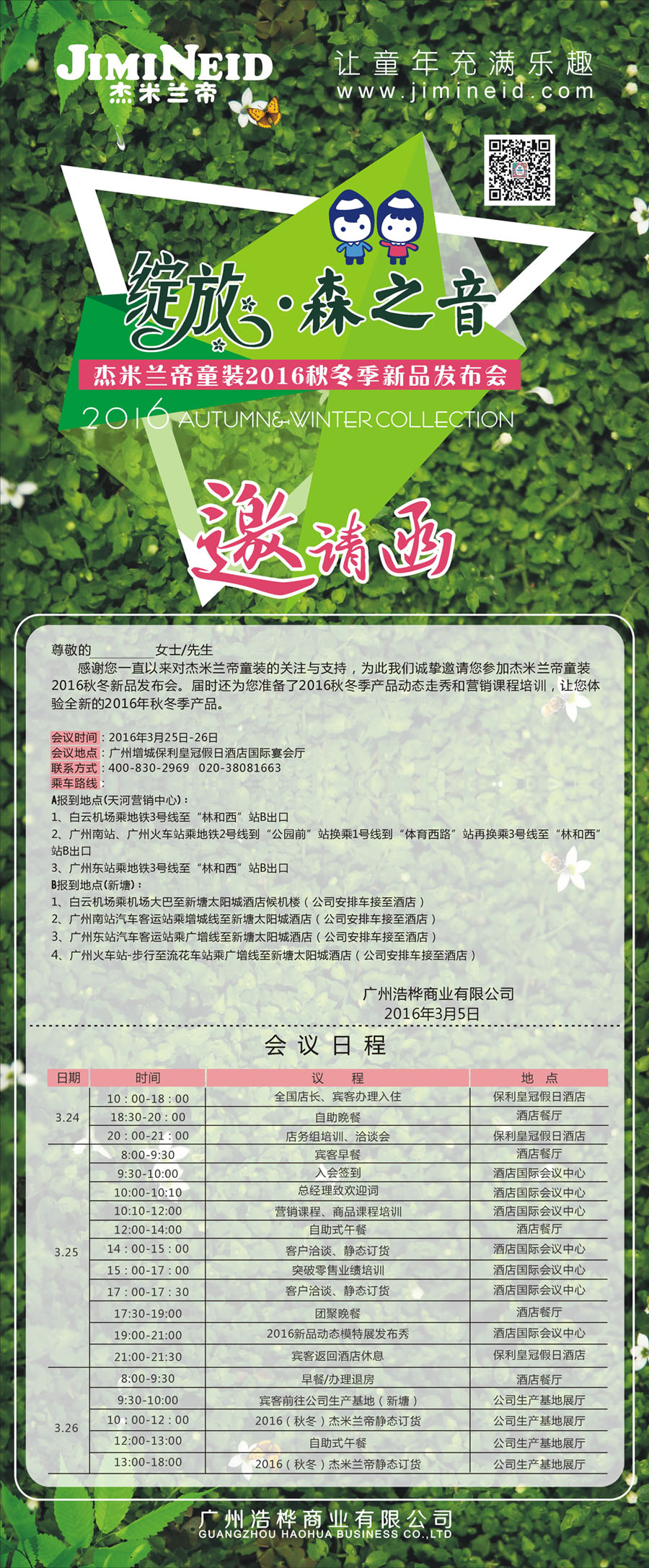 杰米蘭帝童裝2016秋冬新品發(fā)布會流程表