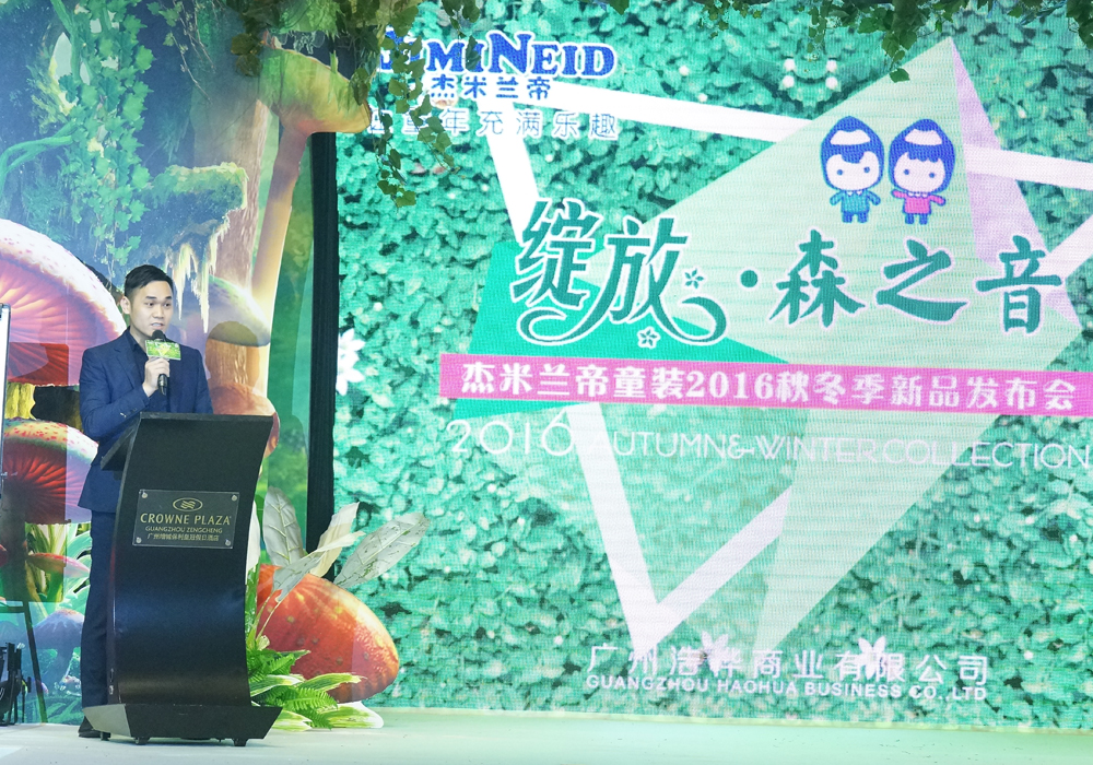 3月25日,杰米蘭帝2016年秋冬新品發(fā)布會暨訂貨會在廣州增城盛大啟幕,杰米蘭帝董事長李彩霞、總經(jīng)理李仕,資深培訓導師閔光亞及來自全國各地的加盟商,特邀嘉賓,南方衛(wèi)視、廣州電視臺、中國童裝時尚網(wǎng)多家時尚媒體蒞臨現(xiàn)場。共300多人齊聚一堂,欣賞這場名為“綻放·森之音”的盛宴。