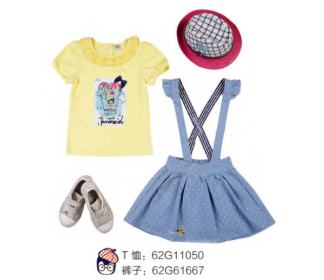 娃娃圓領T+波點吊帶短裙+帆布鞋+個性遮陽帽