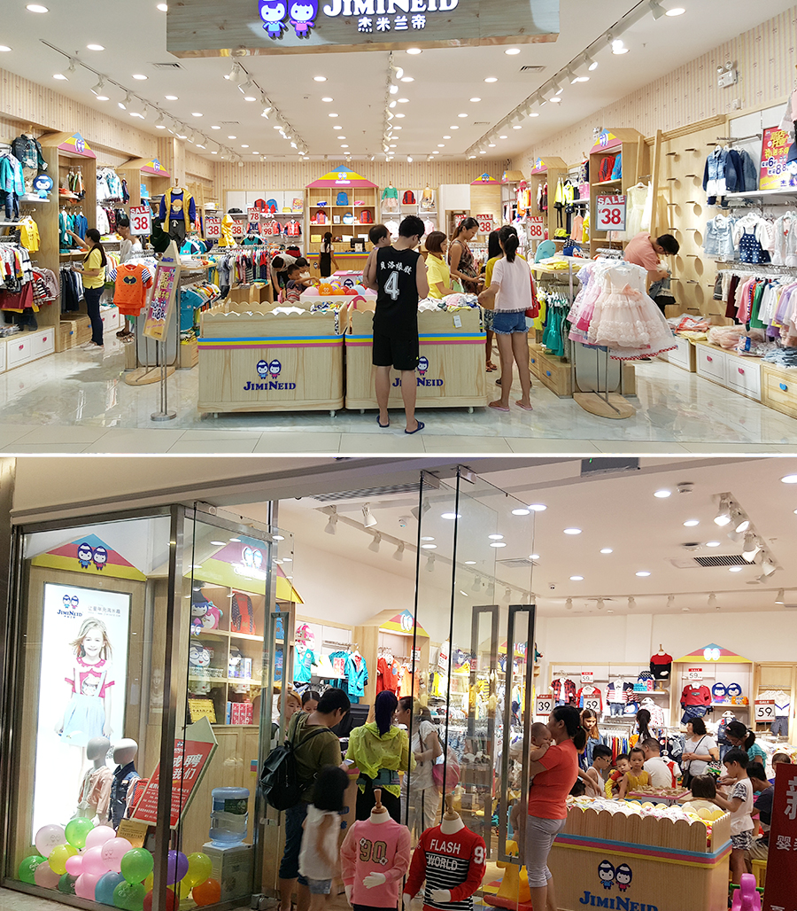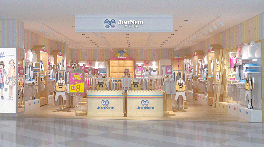 “杰米蘭帝/JIMINEID”快時(shí)尚童裝品牌較其他童裝品牌裝修特點(diǎn):獨(dú)特的建筑裝修,色彩亮麗吸人眼球、布置有序、營(yíng)造兒童嚴(yán)重的夢(mèng)幻世界,杰米蘭帝童裝全新形象設(shè)計(jì)的專賣場(chǎng)內(nèi)設(shè)游樂區(qū)哦,為孩子們提供最歡樂的趣事場(chǎng)地,讓粑粑麻麻們放心購(gòu)物還能和孩子們來場(chǎng)親密的親子互動(dòng),讓孩子們的童年充滿樂趣!