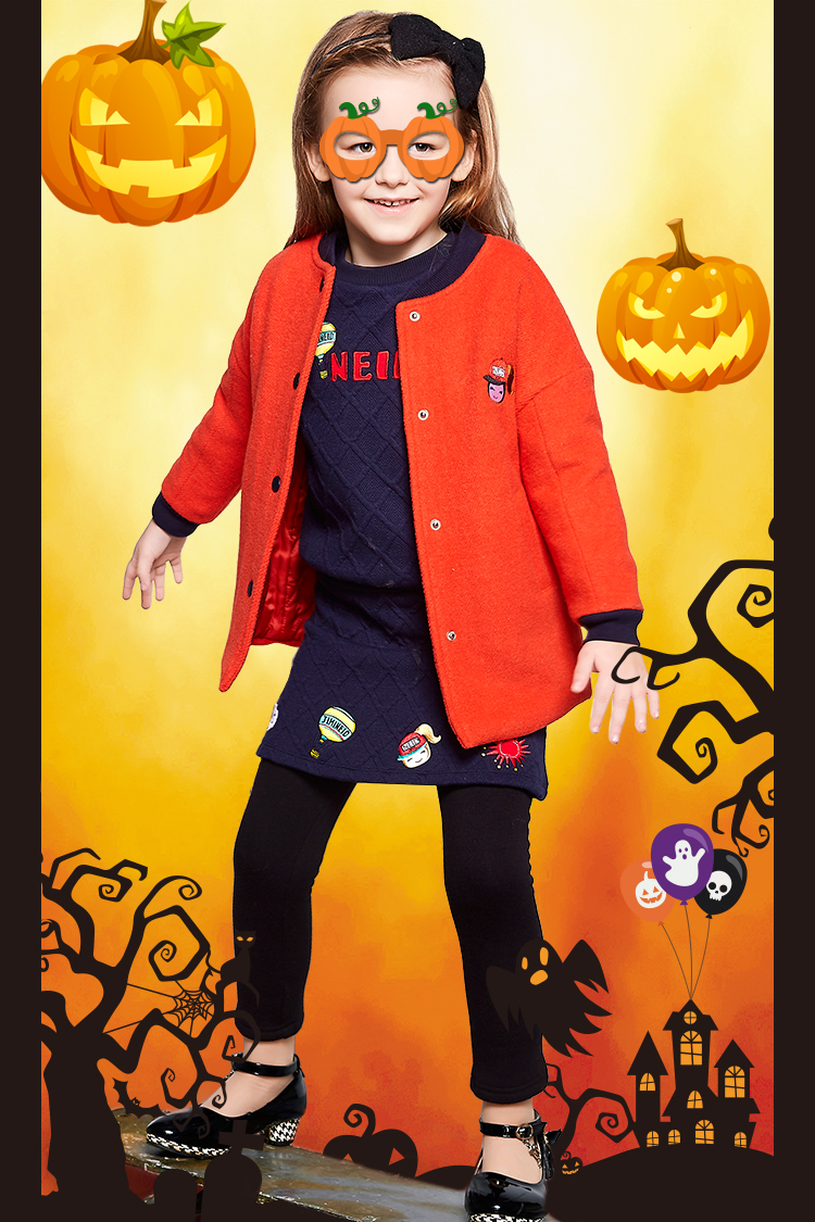 溫暖柔軟的毛呢外套,穿出萬圣節(jié)的淑女怪異,橘紅色暖暖的就是給節(jié)日寶貝的大擁抱!
